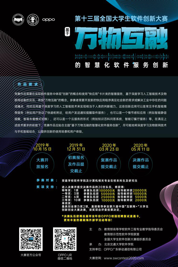 附:全国大学生软件创新大赛是教育部为进一步提升大学生创新思维,全面推动软件行业发展,促进软件专业技术人才培养而设置的全国性赛事。best365官方网站登录入口在过往两届的赛事中均取得了获奖总数全国第一的优异成绩。第十三届大赛将北京交通大学承办,主题为基于万物互融的智慧化软件服务创新。