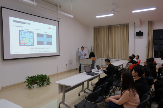 万国伟博士首先展示了许多现阶段应用于国内、配置多种传感器方案的自动驾驶汽车,从而引出地图定位技术在自动驾驶中的意义。接下来,万国伟博士从高精度地图技术与高精度定位技术两个方面分别介绍现阶段的常用方案与在技术层面遇到的重大挑战。同时,万国伟博士将自身研究结果同现有技术进行了详细对比,并展现了在室内、室外等应用场景的运行效果,使同学们受益匪浅。在报告之后,万国伟博士与同学们进行了热烈的讨论,并耐心回答了同学们提出的关于自动驾驶的未来发展趋势等一系列精彩的问题。本次讲座在热烈的掌声中结束。
