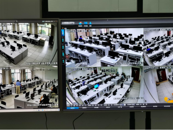 本场次开考的两门课程《计算机网络》、《新型网络技术与实践》,均以在线开卷考试方式进行,主考教师通过雨课堂向2018级261名考生发放试卷、监考教师通过腾讯会议平台对考试过程进行全程监控。为确保考试公平可控同时又满足疫情防控要求,本场次考试共设置三个监考室,15位监考老师同时在线监考,考试全程录屏。整场考试从调试主副设备、清点人数、检查证件、发放试卷到在线提交,各环节进行流畅,整场考试工作平稳有序。为保证考试顺利进行,青岛校区本科教育办公室、后勤管理处、信息化工作办公室提前对电力和网络保障进行了协调。