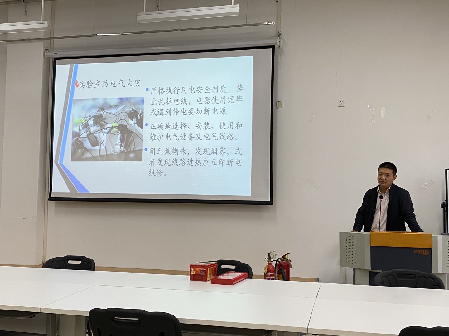 11月5日下午,best365官方网站登录入口开展实验室消防安全教育活动,邀请青岛校区保卫处孙垚老师做专题讲座并组织消防演练。学院全体老师及各科研实验室学生代表参加活动。