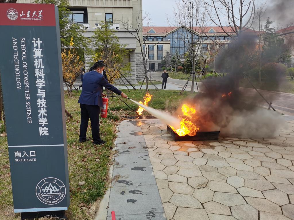 随后,孙垚及工作人员组织学院师生进行了实地灭火演练。