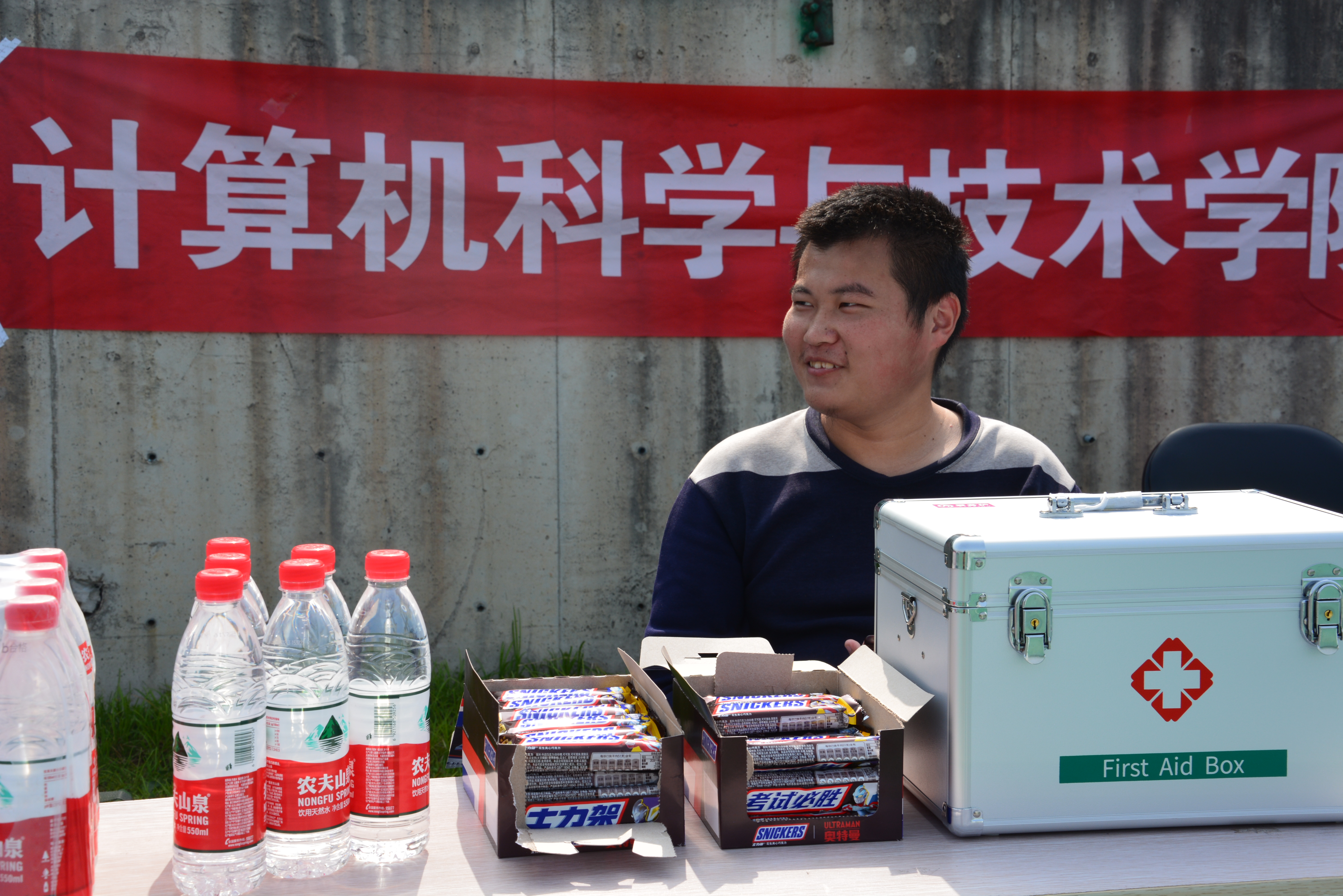 青年向上,时代向前。本次运动会中学院取得的佳绩离不开每一位参赛运动员的刻苦训练与顽强拼搏,同样也离不开默默付出支持他们的后勤组和拉拉队。学院在田径场旁专门设立了补给站,配备有矿泉水等食品供运动员补充体力,还有专门的医药箱和志愿者可在紧急时刻提供援助。