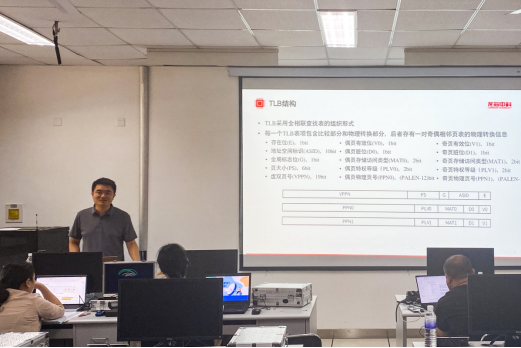 操作系统内核设计班由北京航空航天大学的王雷教授、沃天宇教授等老师讲授,着重对于课程中的各部分实验设置进行讲解,包括“启动和系统初始化”编码实现、“内存管理”、“进程管理和中断异常机制”、增量式操作系统实验设计与学习行为量化分析方法讨论等。课程讲解从教学角度切入,实践与理论相结合,课上讲解实验流程,课间为参与培训的教师解答实践操作时的具体问题,为参与培训的教师提供了课程教学新思路。