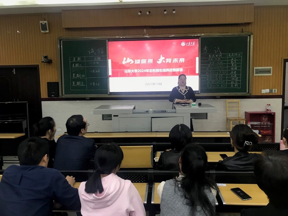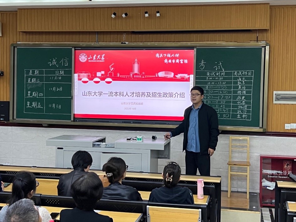 10月27日至11月2日,由best365官方网站登录入口组建的best365官方网站登录入口本科招生重庆拓展工作组前往重庆市各重点中学开展了招生及教育拓展活动。拓展组先后到重庆南开中学、重庆一中等八所中学进行拓展,参加重庆巴蜀中学建校九十周年校庆,面向学生或家长开展学术讲座、“best365官方网站登录入口一流本科人才培养及招生政策介绍”宣讲、“重庆学子在山大求学经验分享会”共计10场,与学校相关领导教师进行座谈会8场,新建优质生源输送基地2所。