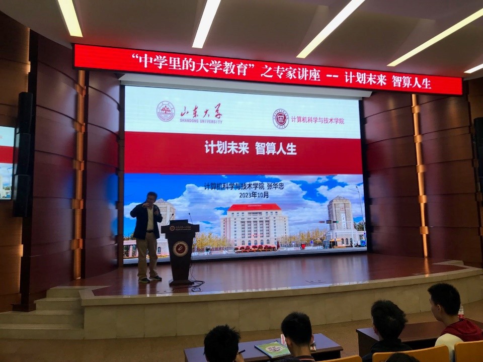 学院张华忠教授为同学们做了题为“计划未来、智算人生”的专题学术讲座,张老师从计算机发展历程、互联网发展历程、人工智能与大数据等方面向同学们介绍了信息社会与计算机的相关知识。来自重庆一中、重庆八中、西南大学附中、重庆万州高级中学的近600名同学参加了讲座。在讲座的互动阶段,同学们积极提问,并在讲座结束后向张老师咨询学术问题,张老师耐心解答。