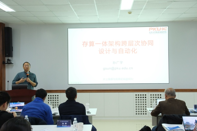 论坛以线下方式进行,分为四个部分。第一部分的报告主讲人为国防科技大学研究员董德尊和中科院计算技术研究所副研究员陈晓明,他们分别以“高性能聚合通信网络加速技术”和“存算一体芯片设计自动化”为题,从不同角度对片上系统的设计以及应用进行了介绍。报告思路开阔,论坛现场气氛热烈。