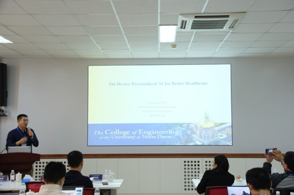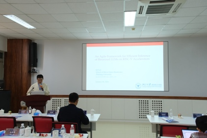 论坛的第二部分,浙江大学研究员孙奇以“An Agile Framework for Efficient Inference of Binarized Large Language Models on RISC-V Accelerators”为题介绍了针对大语言模型的加速技术,北京大学助理教授李萌和圣母大学博士贾振格分别以“基于跨层次协同优化的神经网络加速”和“基于端侧人工智能的个性化研究”为题对片上系统进行人工智能模型的部署与优化等相关课题进行了介绍。