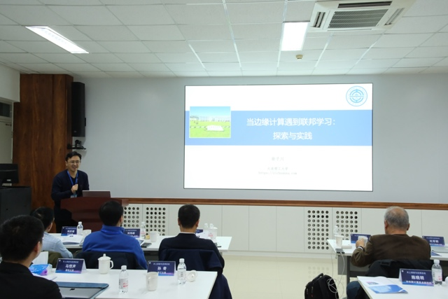 论坛第四环节进行报告的专家包括西安电子科技大学教授杜军朝、中国石油大学(北京)教授刘伟峰、清华大学助理教授马恺声以及大连理工大学教授徐子川。他们的报告题目分别是“面向物联网应用的智能感知模型的训练与推断关键技术研究”“面向科学计算的存算一体加速器设计”“Chiplet机会与挑战:集成、互联与部署”和“当边缘计算遇到联邦学习:探索与实践”。尽管天色已晚,但报告专家以及参与论坛的师生依然热情不减,针对报告内容进行了热烈讨论。