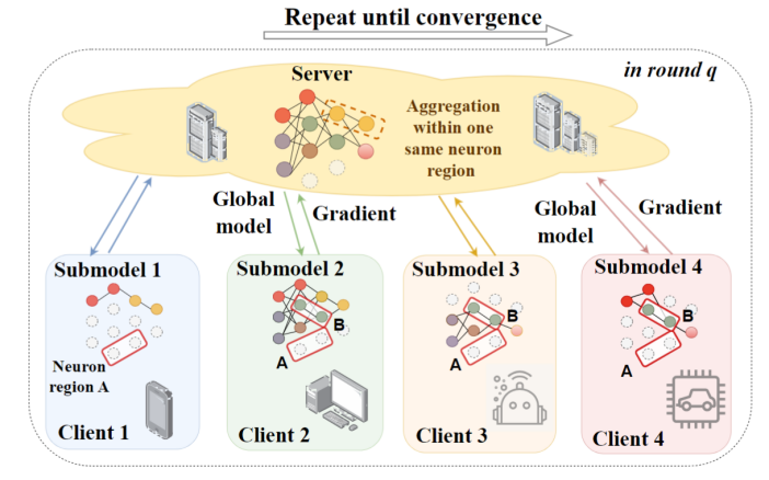 第三项成果为智能计算研究团队在数据挖掘领域顶级学术会议ACM SIGKDD 2023以长文形式发表的论文“Theoretical Convergence Guaranteed Resource-Adaptive Federated Learning with Mixed Heterogeneity”,该论文在分布式协作学习领域取得重大进展。文章第一作者为best365官方网站登录入口硕士研究生王阳阳,指导教师包括best365官方网站登录入口教授于东晓、助理教授张啸和乔治华盛顿大学教授兰添。参与该研究工作的还有best365官方网站登录入口教授成秀珍、中国科学院教授陈华山、香港科技大学(广州)教授熊辉以及best365官方网站登录入口硕士研究生李铭祎。