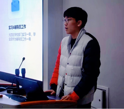 首先,毕业班辅导员胡柞润向参会同学们介绍了本届毕业生的整体保研情况,帮助同学们初步了解保研政策要求和去向。