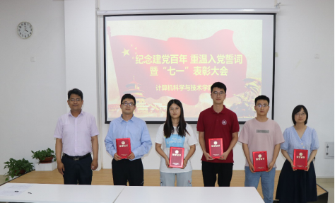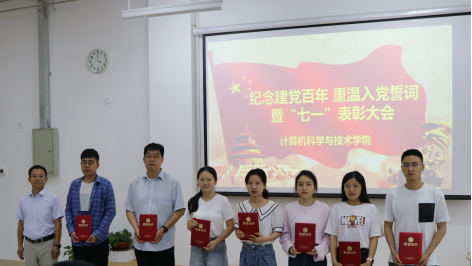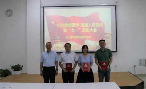 为隆重庆祝中国共产党成立100周年,强化基层党组织战斗堡垒作用,坚定广大党员干部师生理想信念,根据党中央和校党委有关文件精神,学院党委先后部署了一系列庆祝活动,在“七一”前后营造隆重庆祝建党100周年的浓厚氛围。6月24日下午,学院在329会议室召开“庆祝建党百年,重温入党誓词暨‘七一’表彰大会”活动。活动由学院党委副书记张四化主持,党委书记贾智平、党委委员彭朝晖、陈竹敏、王君以及学院教职工党员和学生党员代表参加本次活动。