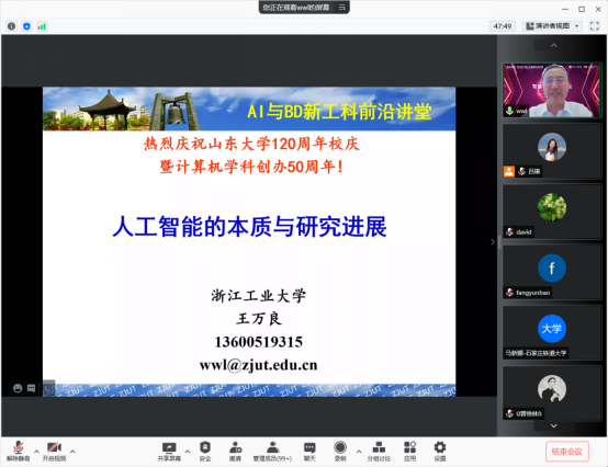2021年9月18日,人工智能与大数据新工科前沿讲堂第十七期在腾讯会议线上直播平台举办。本次讲座邀请了国家教学名师、享受国务院政府特殊津贴专家、浙江省杰出教师王万良教授,为学院师生做了题为“人工智能的本质与研究进展”的报告。best365官方网站登录入口院长成秀珍教授致欢迎辞,报告由人工智能系主任吕琳教授主持。